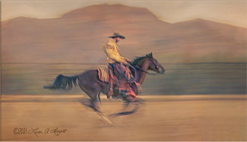 This example of rim light is poorly composed. The cowboy is above the horizon (making him not rim-lit because the sky is too bright and you cannot see the rim as it all blends together!)