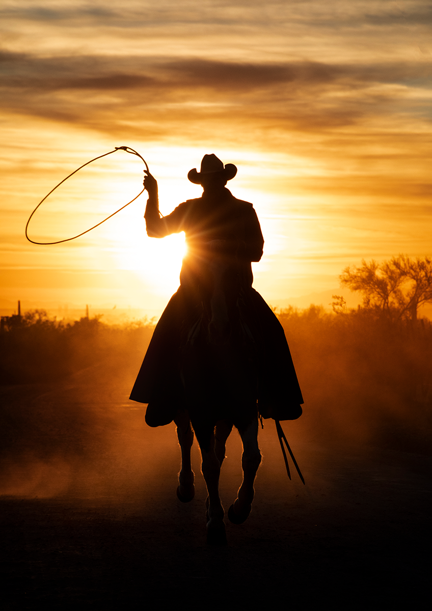 Notice how in this silhouette, the story is told with the cowboy and horse, but the legs of the horse are free from seriously merging subjects like cacti, etc. The legs are separated and that makes for a better photograph.