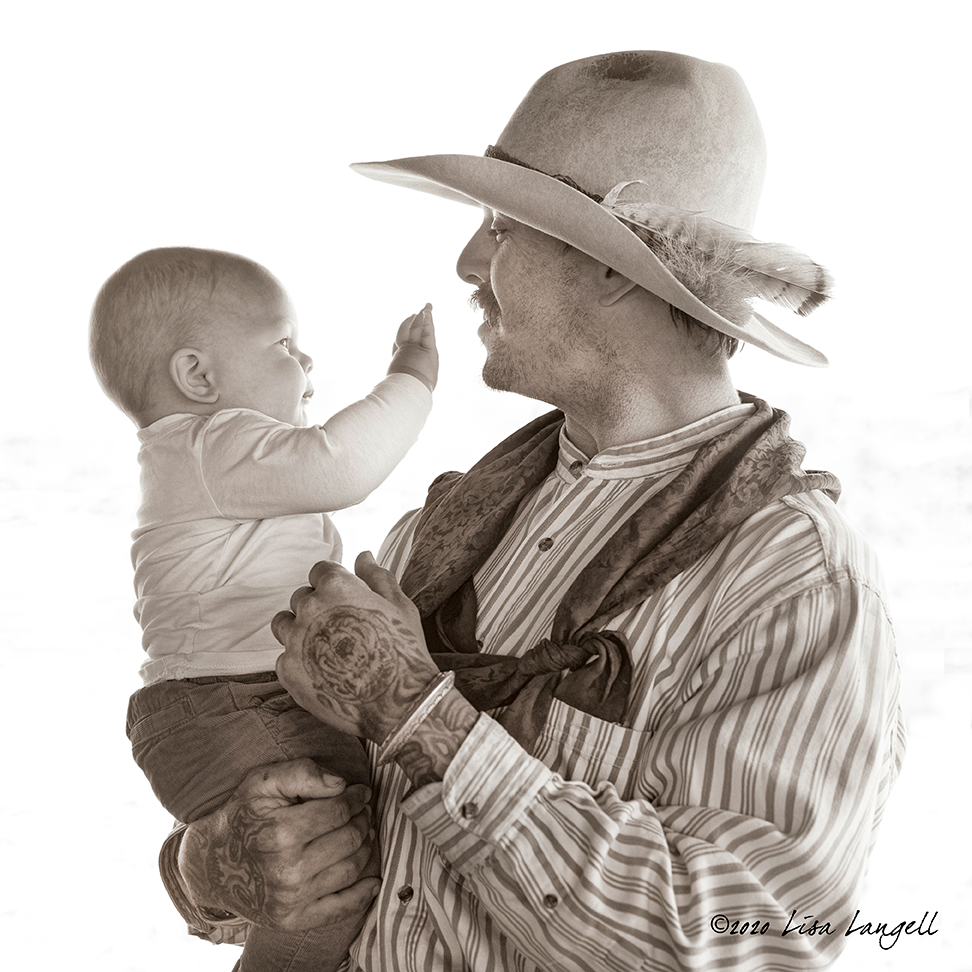 In this image of a cowboy whose face is light by the fire in front of him, you can notice the rim lighting as well on his face. This is done by a flashlight low and behind him, just touching his face from the back. The rest is light from the fire at night.