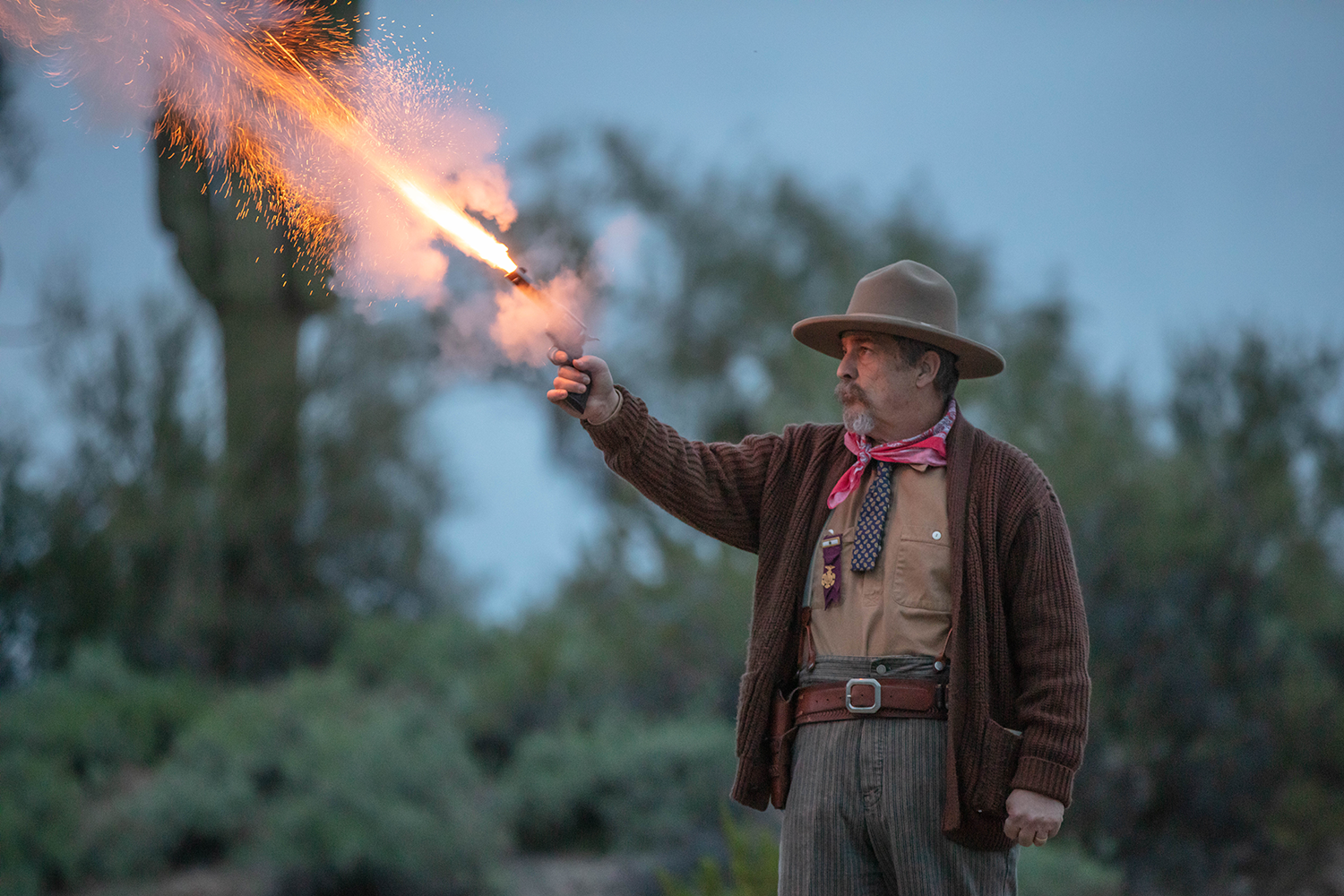 NOTE: All gunfire for the reenactment group uses 1/4 round blanks. There is a armorist on site and no guns are ever pointed toward any people.
